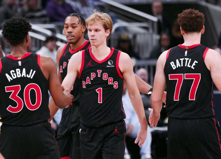 猛龙:英格拉姆24分5篮板5助攻,巴恩斯18分4篮板4助攻,珀尔特尔18分10篮板3助攻3抢断,巴雷特21分、奎克利27分11助攻